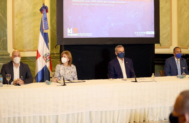 El presidente Luis Abinader y la vicepresidenta Raquel Peña encabezan el acto del lanzamiento de la red 5G a través de INDOTEL. Salón Verde, Palacio Nacional. Santo Domingo. República Dominicana. 09 de Febrero del 2021. VP/Ricardo Rojas