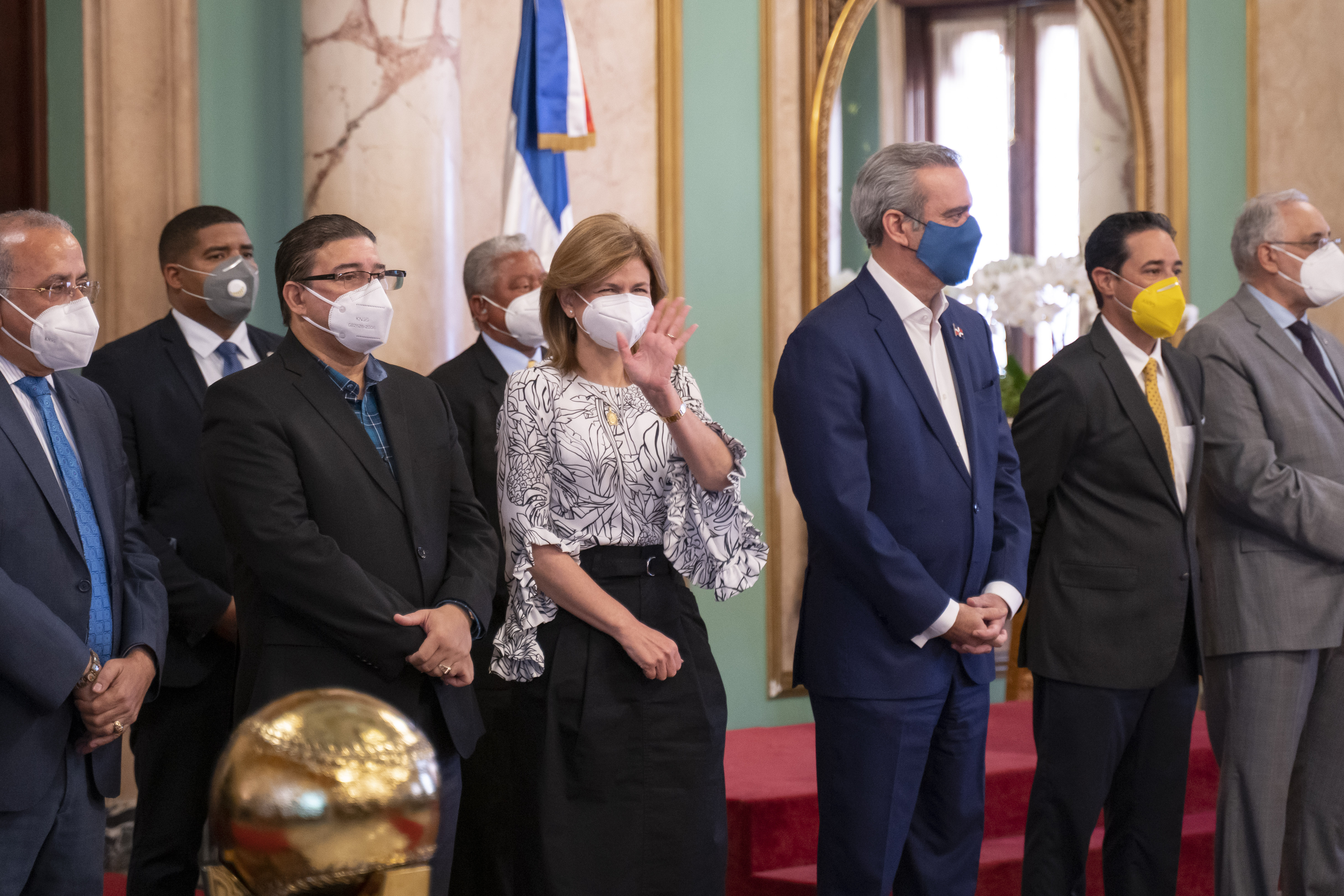 El presidente Luis Abinader y la vicepresidenta Raquel Peña se reúnen con el equipo de las Águilas Cibaeñas para felicitarles por su triunfo en la Serie del Caribe. Santo Domingo, República Dominicana. 9 de Febrero 2021. Vp/ Jhon Escalante