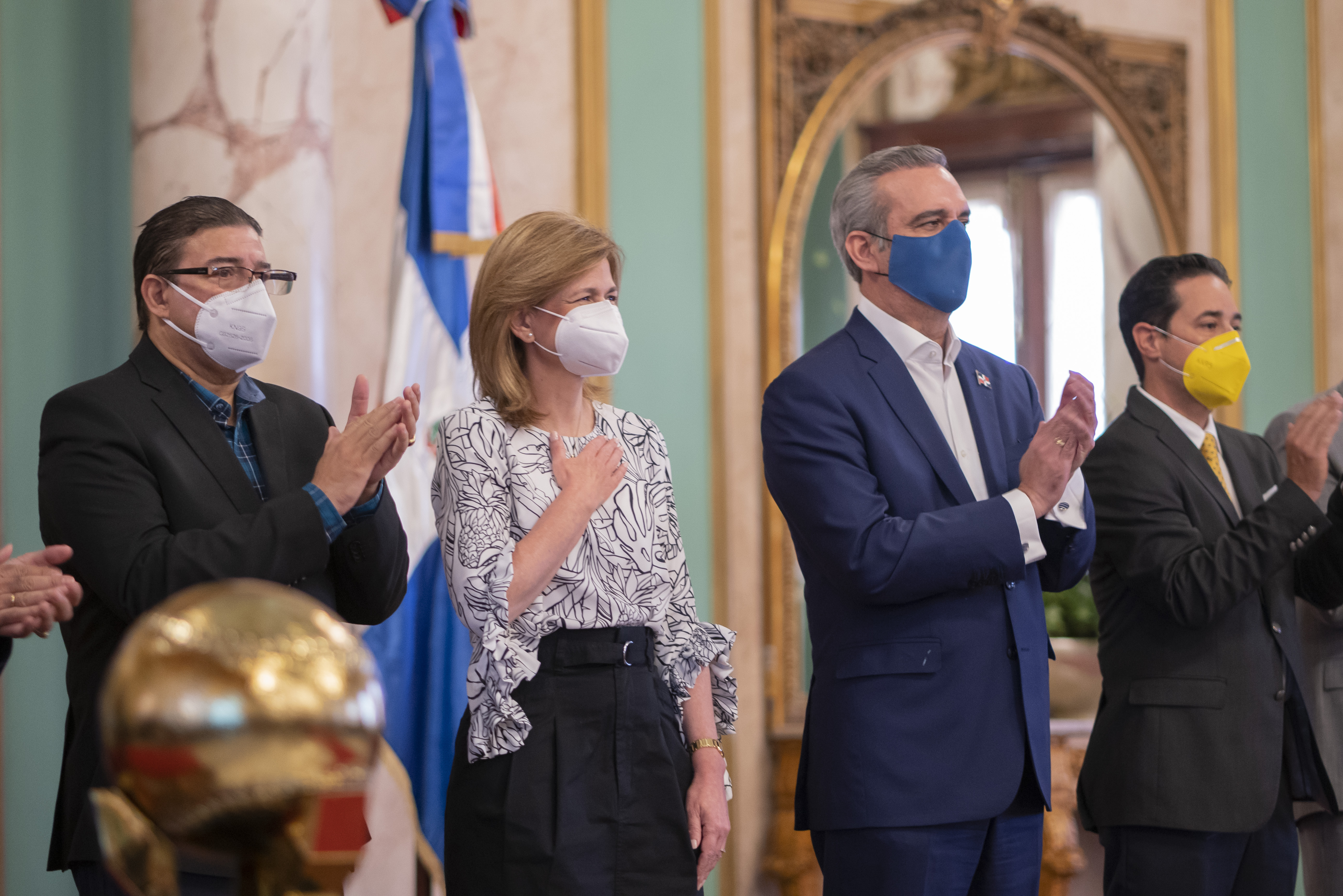 El presidente Luis Abinader y la vicepresidenta Raquel Peña se reúnen con el equipo de las Águilas Cibaeñas para felicitarles por su triunfo en la Serie del Caribe. Santo Domingo, República Dominicana. 9 de Febrero 2021. Vp/ Jhon Escalante