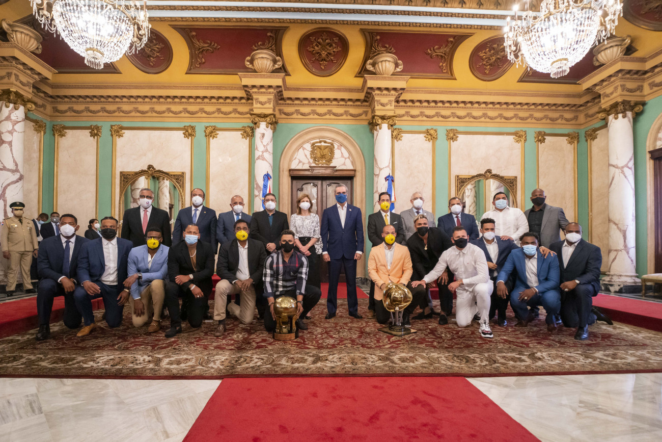 El presidente Luis Abinader y la vicepresidenta Raquel Peña se reúnen con el equipo de las Águilas Cibaeñas para felicitarles por su triunfo en la Serie del Caribe. Santo Domingo, República Dominicana. 9 de Febrero 2021. Vp/ Jhon Escalante