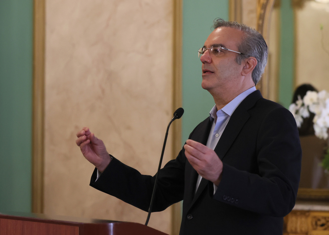 El presidente Luis Abinader, la vicepresidenta Raquel Peña, el ministro de salud Plutarco Arias, y el consultor jurídico del Poder Ejecutivo Antoliano Peralta encabezan el acto de juramentación del Comité gestor de Voluntariados de Instituciones Públicas. Salón Embajadores, Palacio Nacional.