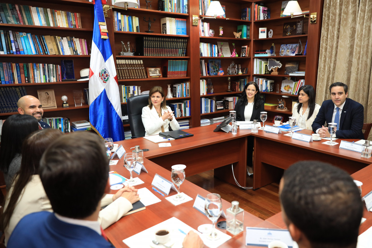 En un encuentro en su despacho, la vicepresidenta de la República, Raquel Peña, sostuvo una reunión con Boris León, presidente de la Junta Directiva de la Asociación Nacional de Jóvenes Empresarios, donde se presentó la nueva directiva y las propuestas de trabajo de las distintas comisiones para el año 2026. Santo Domingo, República Dominicana, 14 de Enero 2026. Vp/ Amehd Gitte