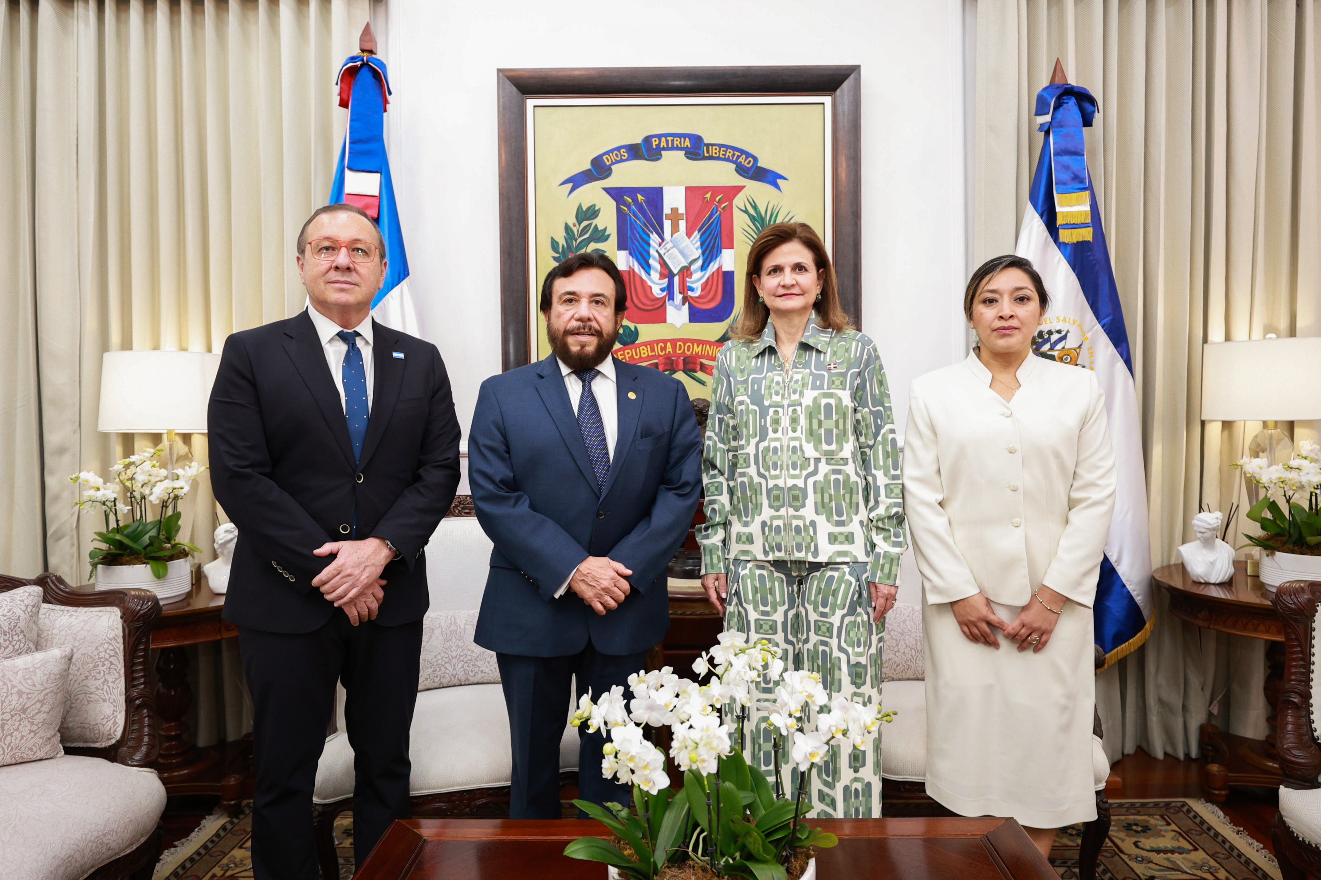 En un encuentro orientado al fortalecimiento de las relaciones bilaterales, la vicepresidenta Raquel Peña recibió al excelentísimo señor Félix Ulloa, vicepresidente de la República de El Salvador, con quien conversó sobre temas de interés común para la República Dominicana 🇩🇴 y la República de El Salvador. Santo Domingo, República Dominicana, 13 de Febrero 2026. Vp/ Amehd Gitte