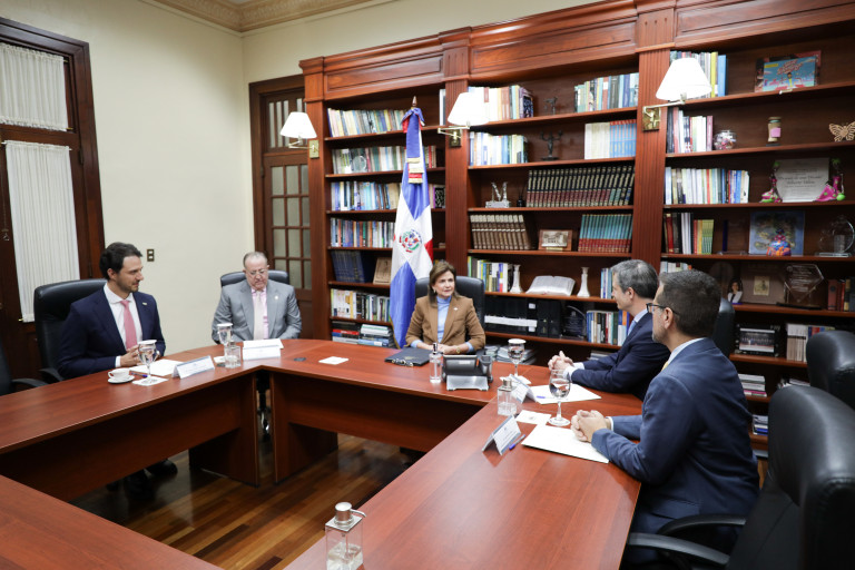 En un encuentro de trabajo, la vicepresidenta Raquel Peña recibió al presidente regional de Visa para América Latina y el Caribe, Sr. Nuno Lopes Alves, junto a ejecutivos de la empresa y al ministro de Hacienda y Economía, Magín Díaz. Santo Domingo, República Dominicana, 11 de Febrero 2026. Vp/ Sintia Mendez