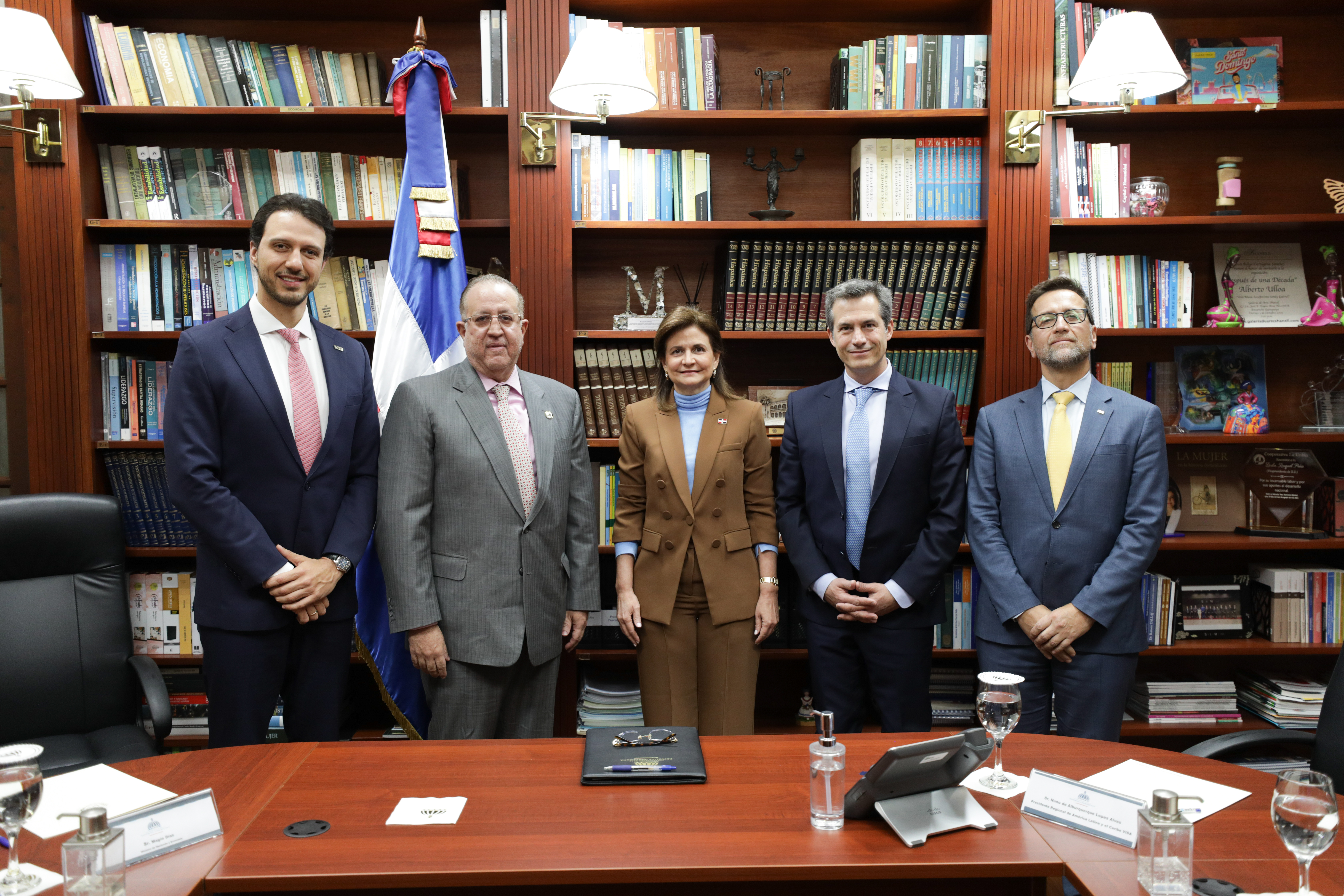 En un encuentro de trabajo, la vicepresidenta Raquel Peña recibió al presidente regional de Visa para América Latina y el Caribe, Sr. Nuno Lopes Alves, junto a ejecutivos de la empresa y al ministro de Hacienda y Economía, Magín Díaz. Santo Domingo, República Dominicana, 11 de Febrero 2026. Vp/ Sintia Mendez