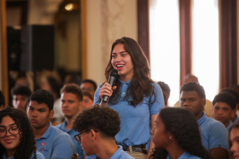 Estudiantes del Colegio Dominicano La Salle visitaron hoy el Palacio Nacional, donde fueron recibidos por la vicepresidenta Raquel Peña. Santo Domingo, República Dominicana. 20 Febrero del 2026. VP/ Erly Morales.