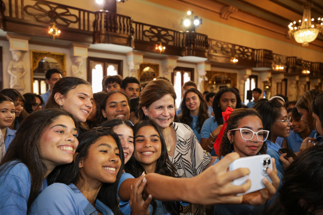 Estudiantes del Colegio Dominicano La Salle visitaron hoy el Palacio Nacional, donde fueron recibidos por la vicepresidenta Raquel Peña. Santo Domingo, República Dominicana. 20 Febrero del 2026. VP/ Erly Morales.