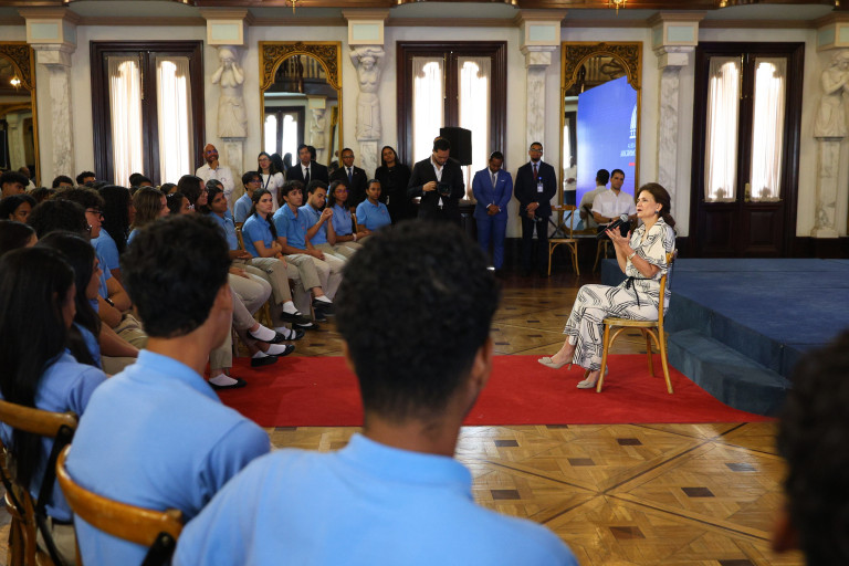 Estudiantes del Colegio Dominicano La Salle visitaron hoy el Palacio Nacional, donde fueron recibidos por la vicepresidenta Raquel Peña. Santo Domingo, República Dominicana, 20 de Febrero 2026. Vp/ Amehd Gitte