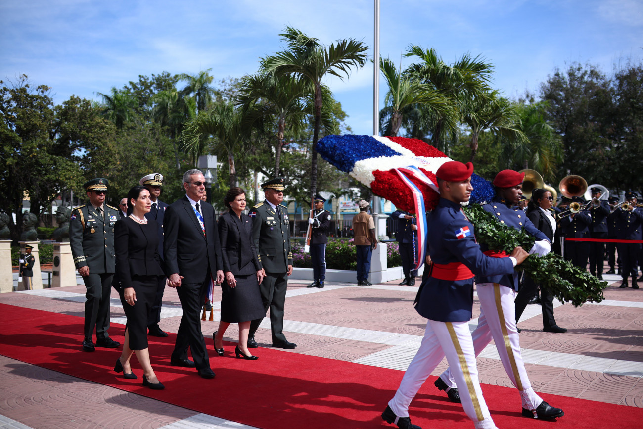 Como parte de las actividades conmemorativas por el Día de la Independencia Nacional, el presidente Luis Abinader, junto a la vicepresidenta Raquel Peña y la primera dama Raquel Arbaje, depositaron una ofrenda floral en el Altar de la Patria. Santo Domingo, República Dominicana, 27 de Febrero 2026. Vp/ Amehd Gitte