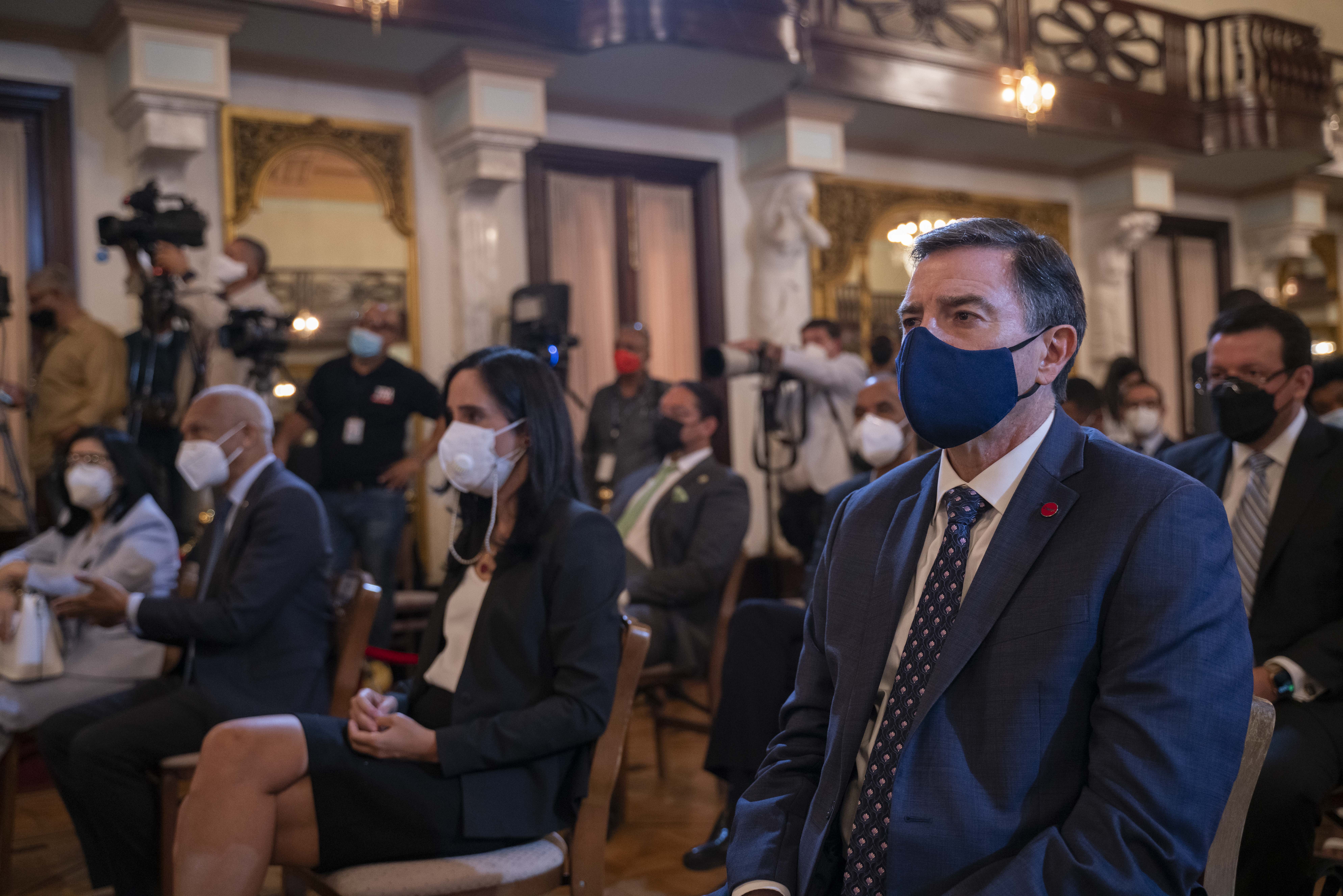 El presidente Luis Abinader y la vicepresidenta Raquel Peña, junto al resto de los miembros del Gabinete de Salud, presentan al país el Plan Nacional de Vacunación contra el COVID-19. Santo Domingo, República Dominicana. 15 de Febrero 2021. Vp/ Jhon Escalante