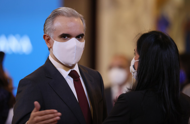 El presidente Luis Abinader y la vicepresidenta Raquel Peña, junto al resto de los miembros del Gabinete de Salud, presentan al país el Plan Nacional de Vacunación contra el COVID-19. Santo Domingo . República Dominicana. 15 de Febrero del 2021. VP/Ricardo Rojas