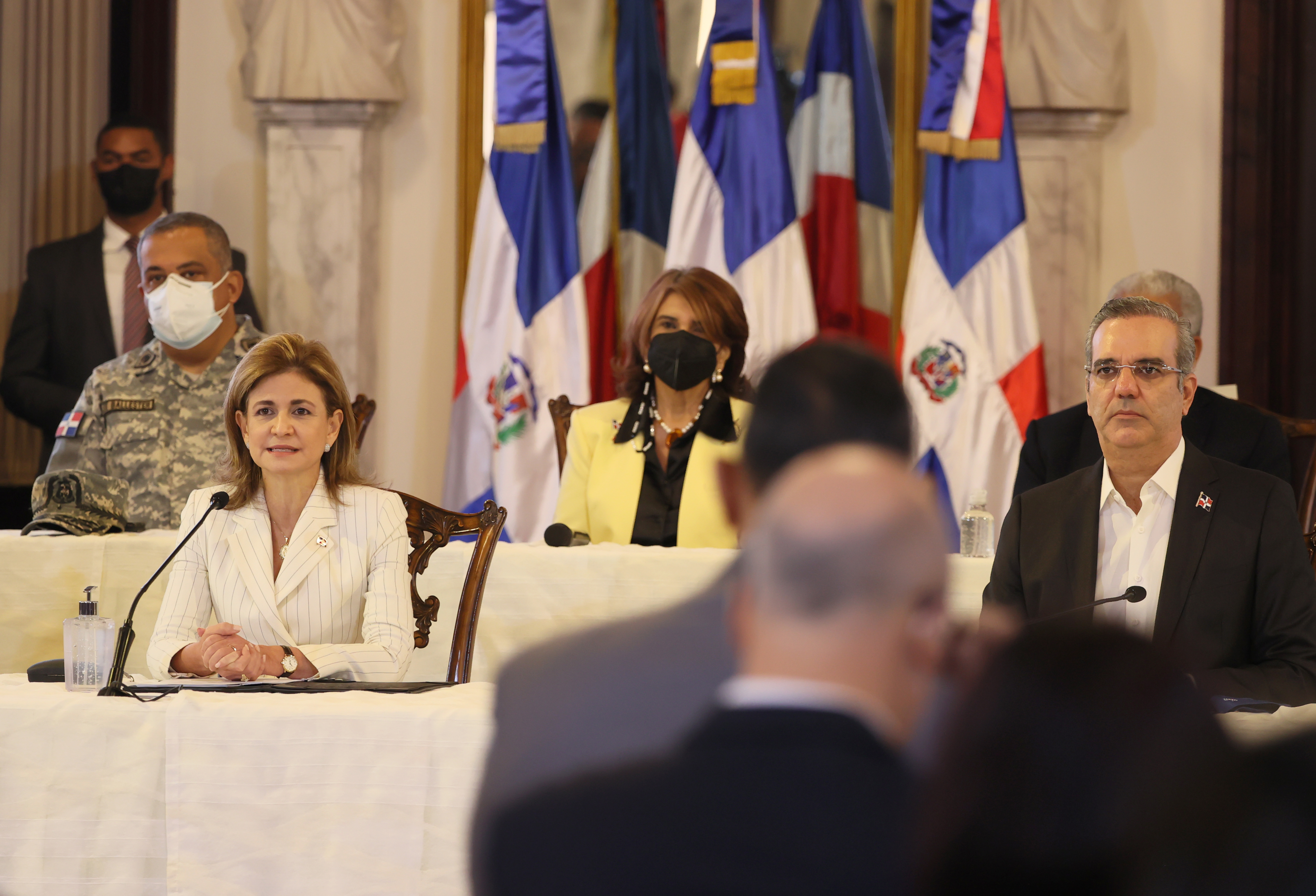 El presidente Luis Abinader y la vicepresidenta Raquel Peña, junto al resto de los miembros del Gabinete de Salud, presentan al país el Plan Nacional de Vacunación contra el COVID-19. Santo Domingo . República Dominicana. 15 de Febrero del 2021. VP/Ricardo Rojas