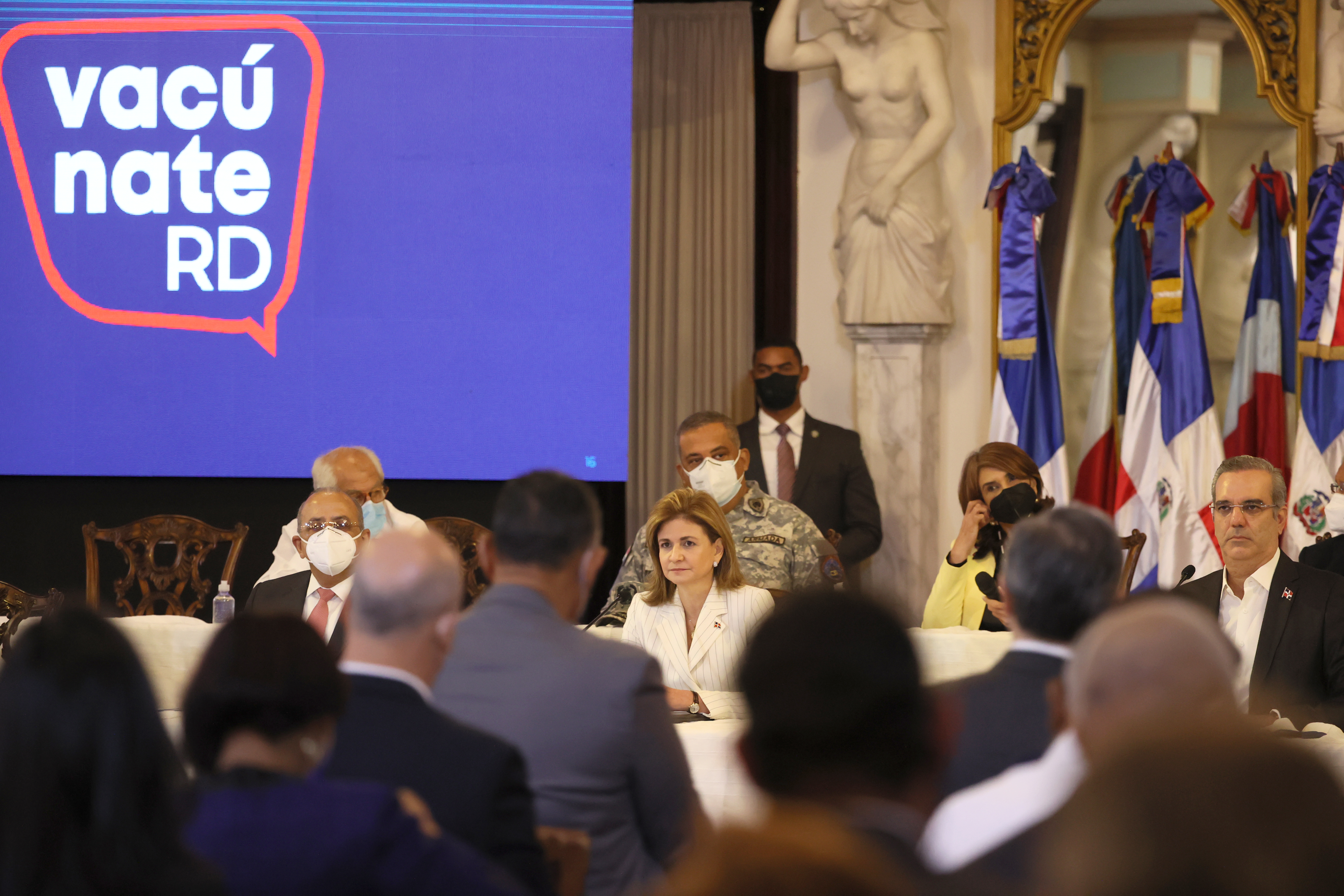 El presidente Luis Abinader y la vicepresidenta Raquel Peña, junto al resto de los miembros del Gabinete de Salud, presentan al país el Plan Nacional de Vacunación contra el COVID-19. Santo Domingo . República Dominicana. 15 de Febrero del 2021. VP/Ricardo Rojas