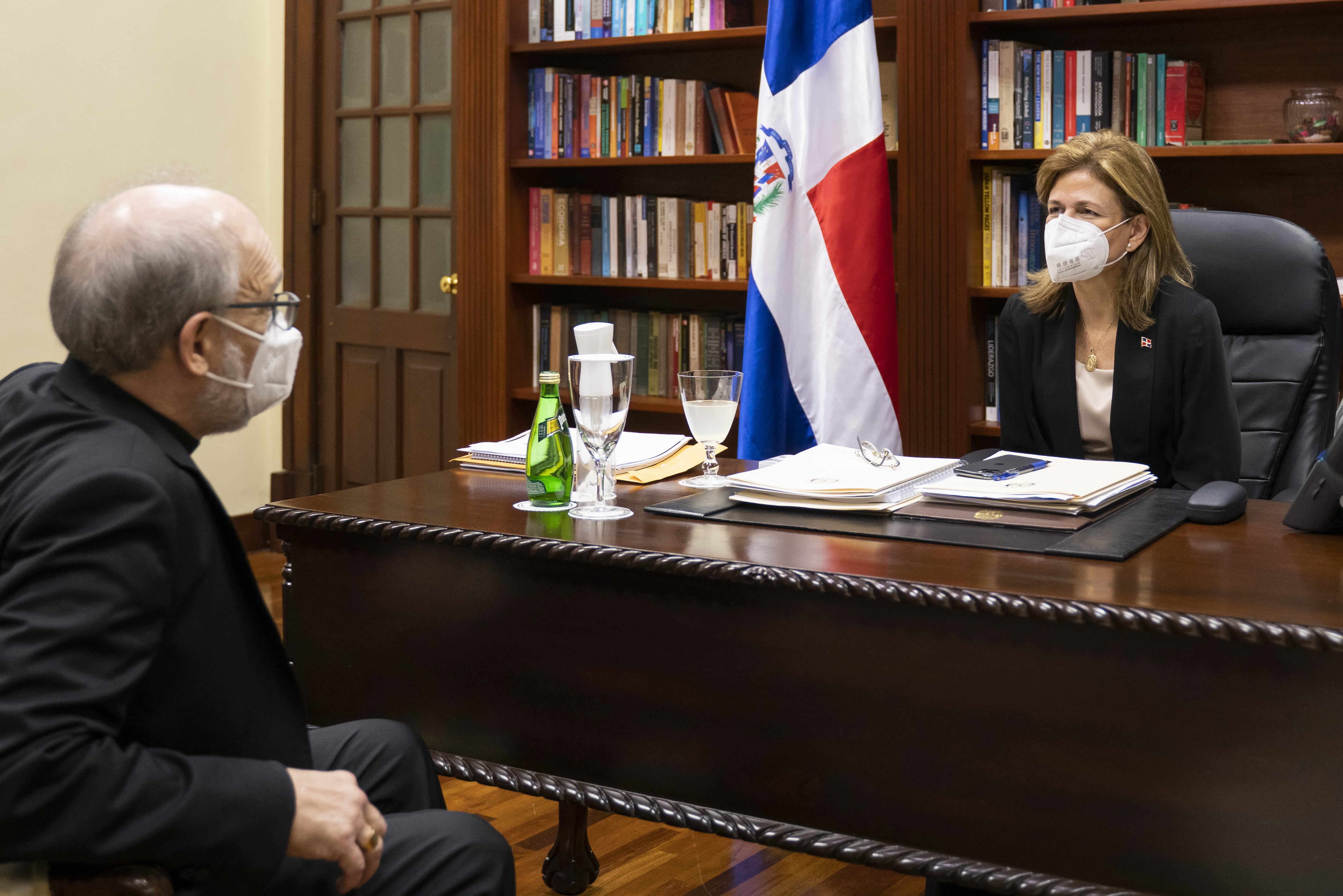 La vicepresidenta Raquel Peña sostiene una reunión con el Monseñor Víctor Masalles, Obispo de la provincia de Baní. Santo Domingo, República Dominicana. 16 de Febrero 2021. Vp/ Jhon Escalante