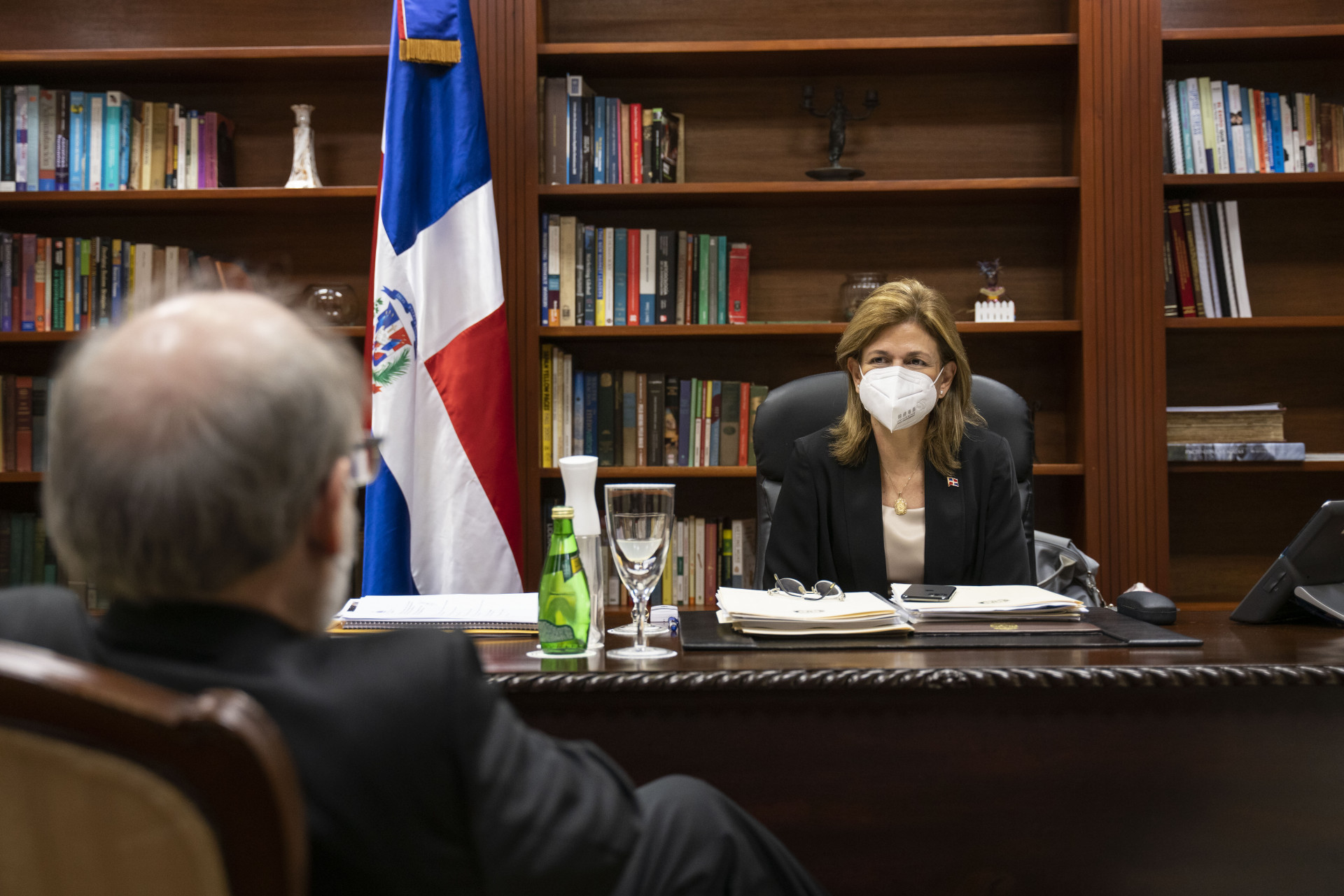 La vicepresidenta Raquel Peña sostiene una reunión con el Monseñor Víctor Masalles, Obispo de la provincia de Baní. Santo Domingo, República Dominicana. 16 de Febrero 2021. Vp/ Jhon Escalante