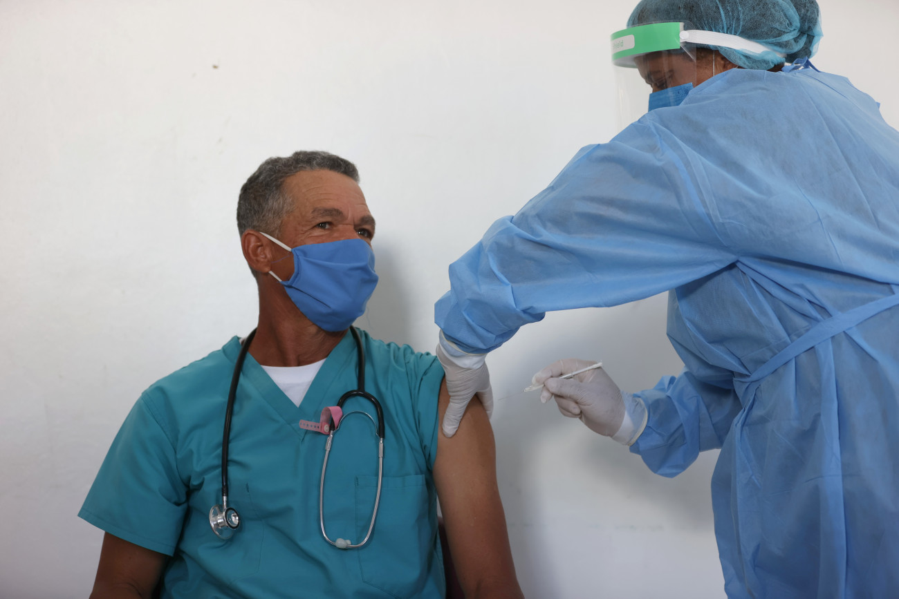 Inicio de la jornada del Plan Nacional de Vacunación contra el COVID-19 en el Hospital Municipal de Restauración. Restauración, Dajabón.