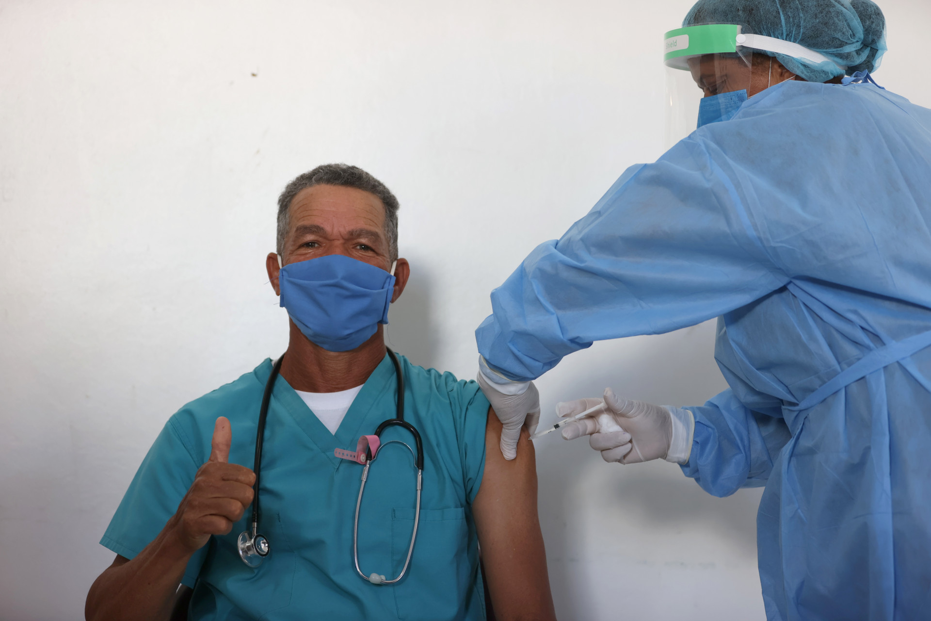 Inicio de la jornada del Plan Nacional de Vacunación contra el COVID-19 en el Hospital Municipal de Restauración. Restauración, Dajabón.
