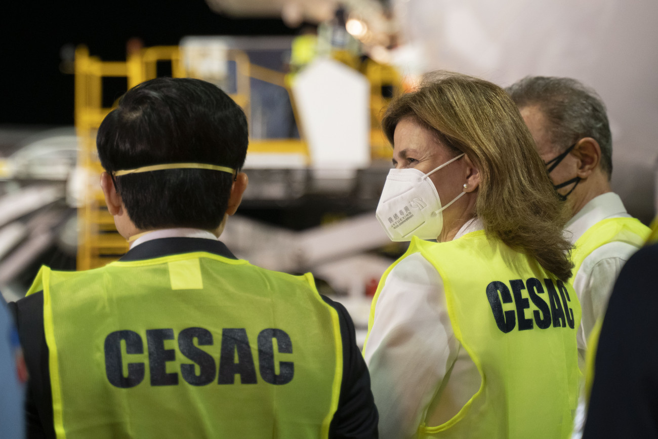 La vicepresidenta Raquel Peña encabezó el arribo de 768 mil vacunas contra el COVID-19 a la República Dominicana, procedentes de la República Popular China. Boca Chica, República Dominicana. 23 de Febrero 2021. Vp/ Jhon Escalante