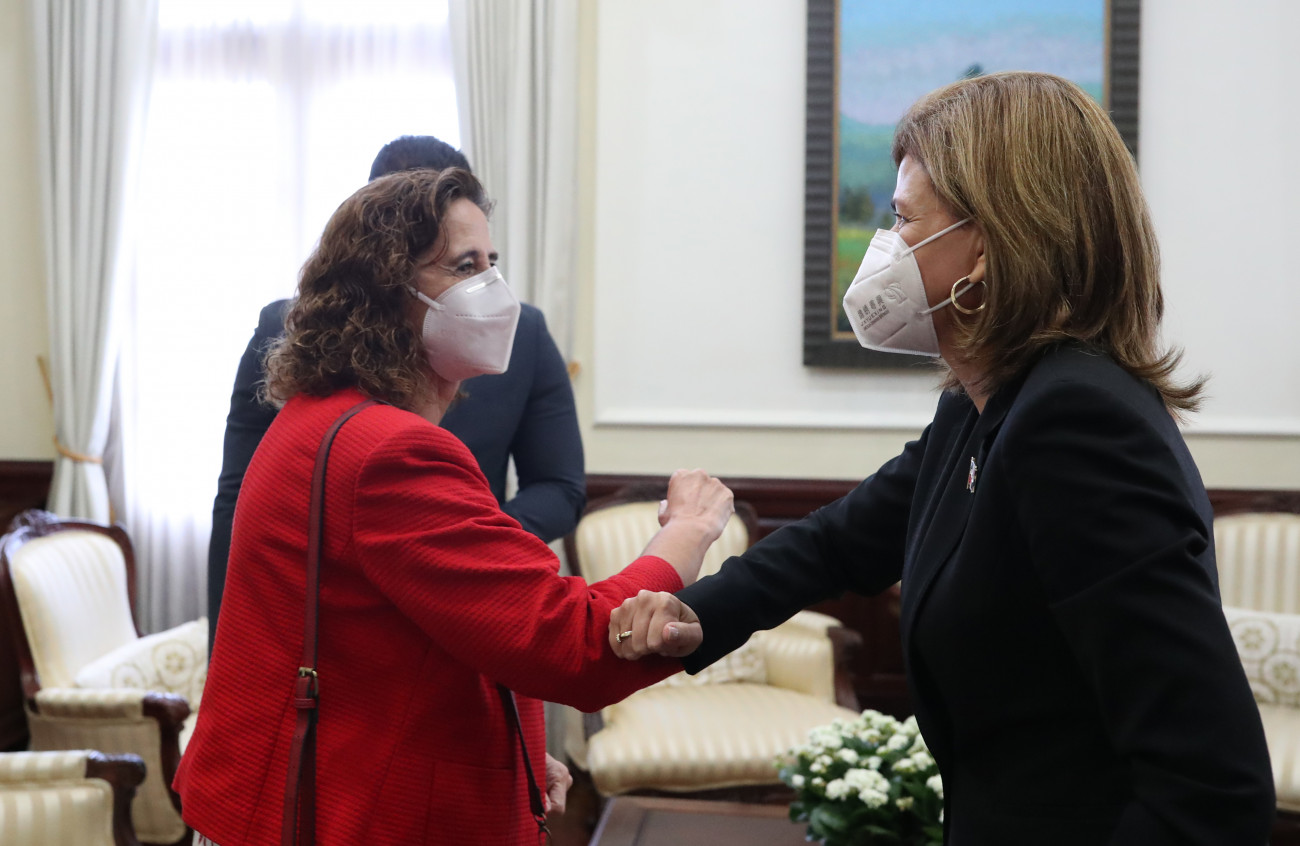 La señora Vicepresidenta Raquel Peña recibe en su despacho a las Sras. Rosa Elcarte y Alexandra Valerio, representantes de UNICEF y del Banco Mundial.