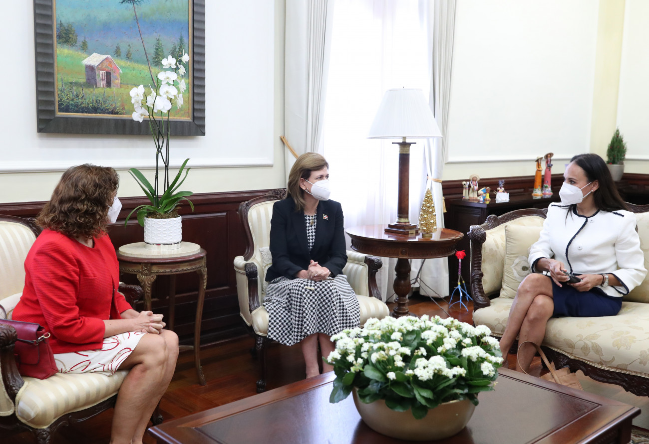 La señora Vicepresidenta Raquel Peña recibe en su despacho a las Sras. Rosa Elcarte y Alexandra Valerio, representantes de UNICEF y del Banco Mundial.