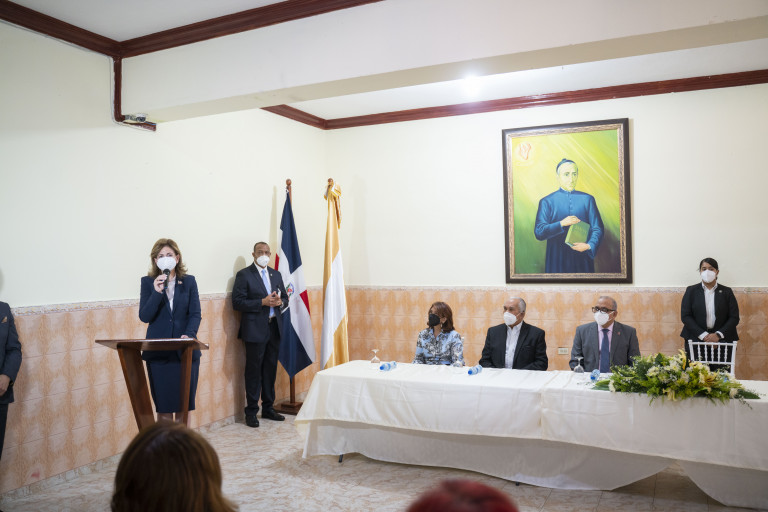 La vicepresidenta Raquel Peña y el Ministro de Salud Pública Dr. Plutarco Arias lideran el Inicio de la «FASE 1C» del Plan Nacional de Vacunación contra el COVID-19 en hogares de adultos mayores, acompañado de los Sres. José García Ramirez, director del consejo nacional de envejecientes (CONAPE), Dr. Edwar Guzmán, viceministro de Planificacion y Desarrollo, la Dra. Ivelisse Acosta, de Salud Colectiva, ambos de MISPAS. Santo Domingo, Republica Dominicana. 25 de Febrero 2021. Vp/ Jhon Escalante