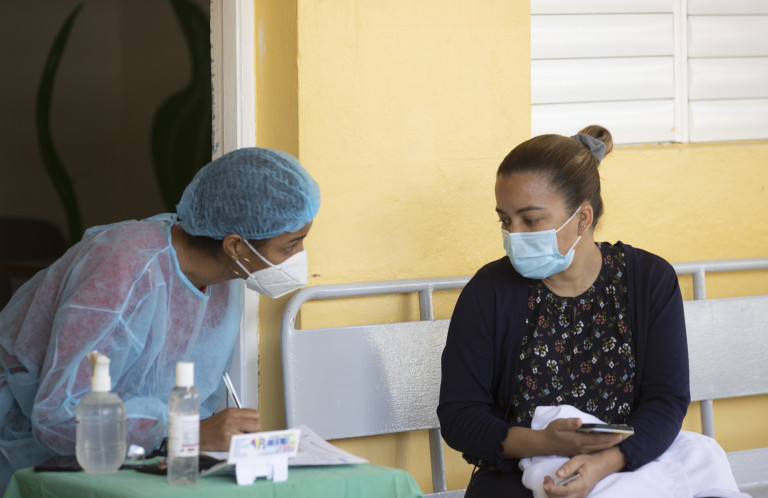 Inicio de la jornada del Plan Nacional de Vacunación contra el COVID-19 en el Hospital Municipal Dr. Virgilio Garcia. Cabrera, María Trinidad Sánchez.