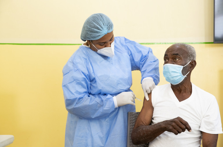 Inicio de la jornada del Plan Nacional de Vacunación contra el COVID-19 en el Hogar De Ancianos San Antonio Maria Claret. Puerto Plata, Puerto Plata.