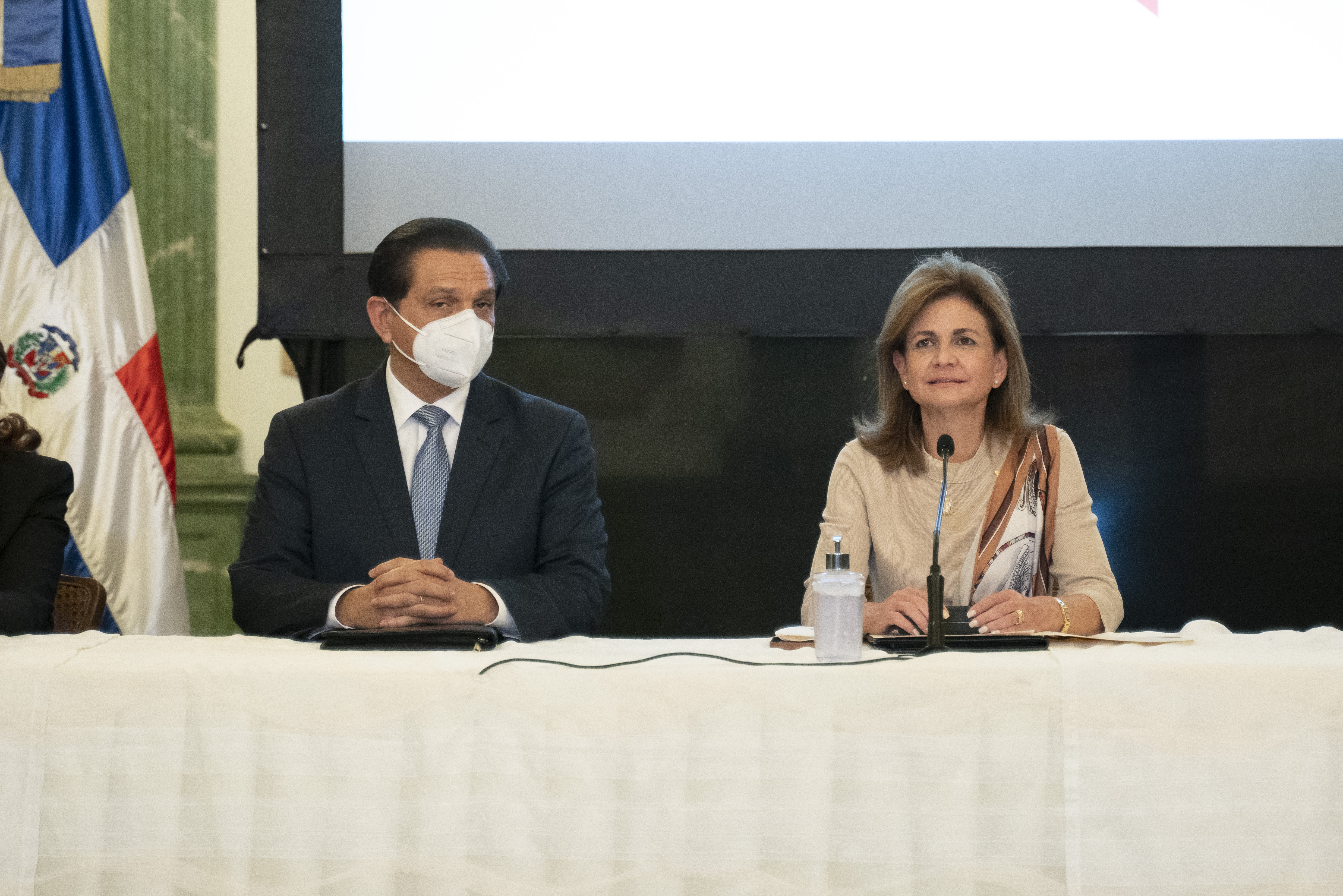 La vicepresidenta Raquel Peña y el Ministro de Salúd Pública y Asistencia Social, Dr. Daniel Rivera, encabezaron rueda de prensa para presentar las actualidades del Plan Nacional de Vacunación contra el COVID-19. Santo Domingo, República Dominicana. 01 de Marzo 2021. Vp/ Jhon Escalante
