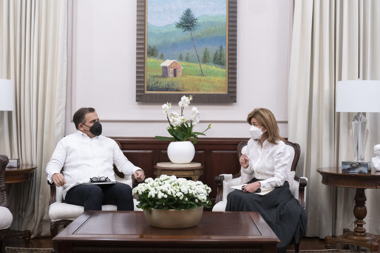 La vicepresidenta Raquel Peña se reúne con los Sres. Sr. Jochi Vicente, ministro de Hacienda, Sr. Luis Miguel Decamps, ministro de Trabajo, Sr. Edwar Guzmán, viceministro de Salud, Dr. Pedro Luis Catellanos, superintendente de la Sisalril, Sr. Andrés Mejía, presidente ejecutivo de Mapfre, Sra. Zhaira Guadalamar, gerente general ARS Universal, el Sr. Eduardo Cruz Elap, presidente ARS Humano y el Sr. Gustavo Guilamo, jefe de Gabinete de Senasa. Santo Domingo, República Dominicana. 2 de Marzo 2021. Vp/ Jhon Escalante