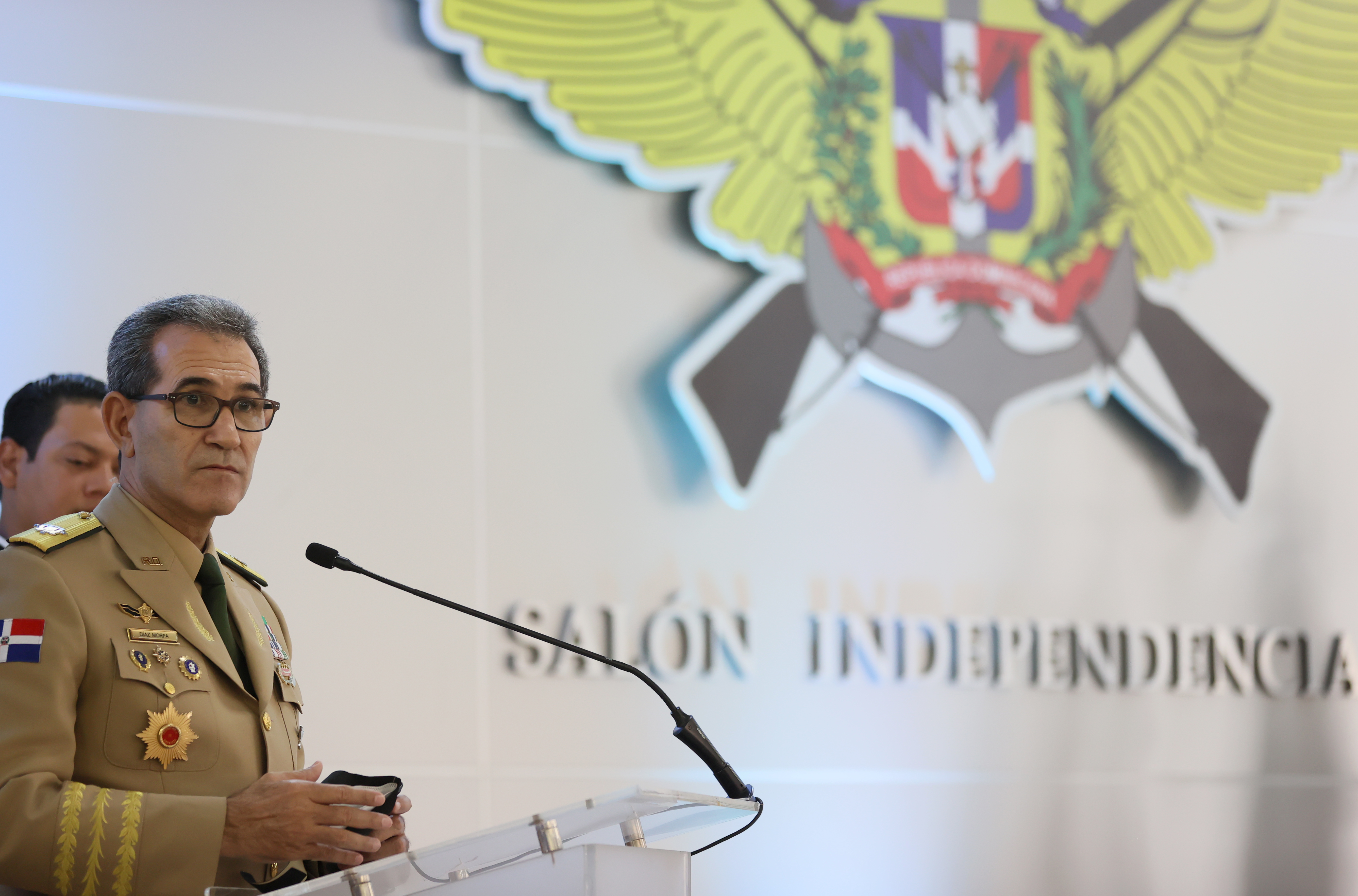 La vicepresidenta Raquel Peña, la primera dama Raquel Arbaje, y el ministro de defensa, Teniente General Carlos Luciano Díaz Morfa, E.R.D., encabezan el acto de reconocimiento a la mujer militar dominicana en conmemoración del Día Internacional de la Mujer. Salón independencia, Ministerio de Defensa.
