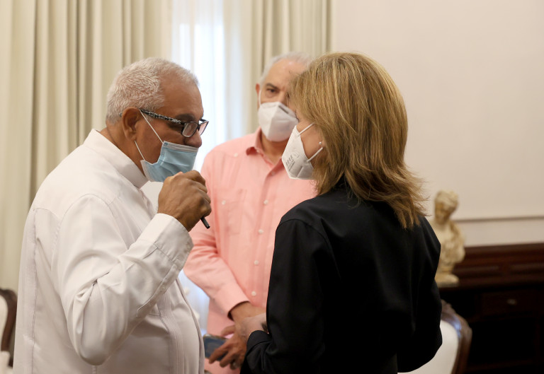 La vicepresidenta Raquel Peña sostuvo una reunión con Monseñor Lorenzo Vargas, Vicario Episcopal de Santo Cristo de Los Milagros; Monseñor Francisco Ozoria, Arzobispo de la Arquidiócesis de Santo Domingo y el Dr. Mario Lama, director ejecutivo del Servicio Nacional de Salud (SNS).