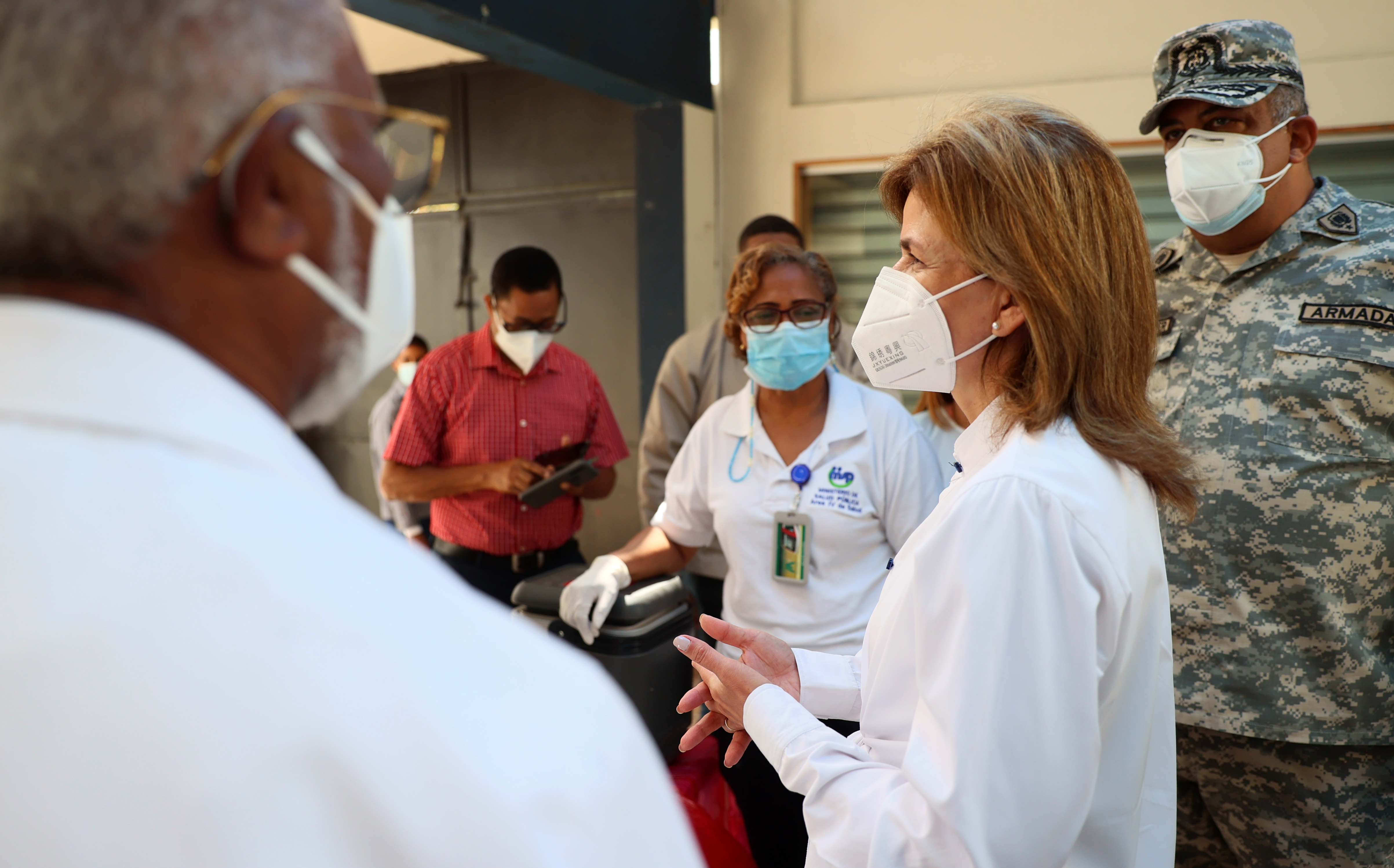 La vicepresidenta Raquel Peña visita las jornadas de las «Fases IB y IC» del Plan Nacional de Vacunación contra el COVID-19, para el personal de salud de todas las edades y adultos mayores de 70 años, en el Club Deportivo Cultural El Rosal (Santo Domingo Este) y en el Club María Auxiliadora (Distrito Nacional).