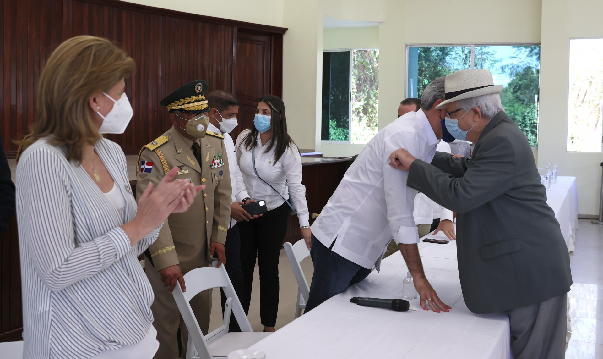 El presidente Luis Abinader y la vicepresidenta Raquel Peña asisten a un almuerzo con el gremio de productores agropecuarios de la zona.