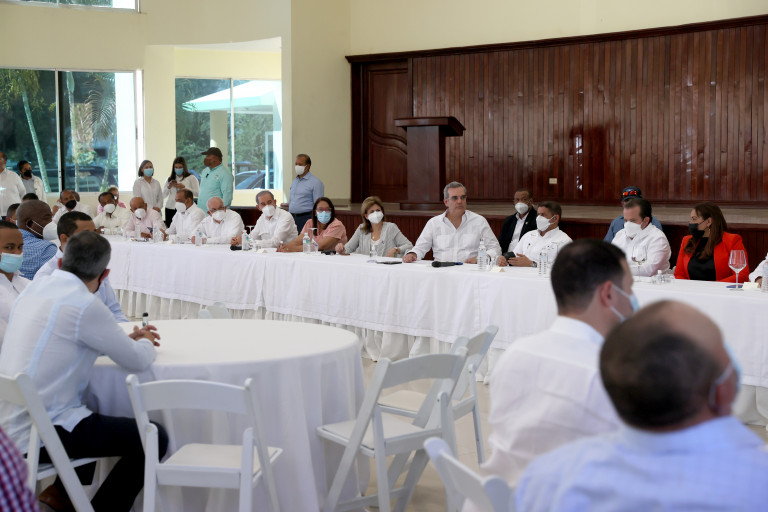 El presidente Luis Abinader y la vicepresidenta Raquel Peña asisten a un almuerzo con el gremio de productores agropecuarios de la zona.
