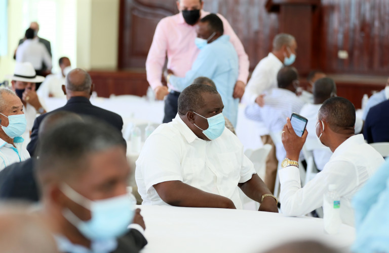 El presidente Luis Abinader y la vicepresidenta Raquel Peña asisten a un almuerzo con el gremio de productores agropecuarios de la zona.