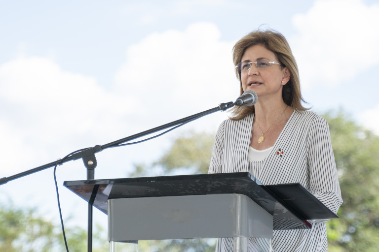 la vicepresidenta Raquel Peña y la ministra de la mujer, Mayra Jimenez, encabezan el Primer Picazo en la construcción Centro de Salud Integral de Adolecentes y Jóvenes en San Juan. San Juan de la Maguana, República Dominicana. 14 de Marzo 2021. Vp/ Jhon Escalante