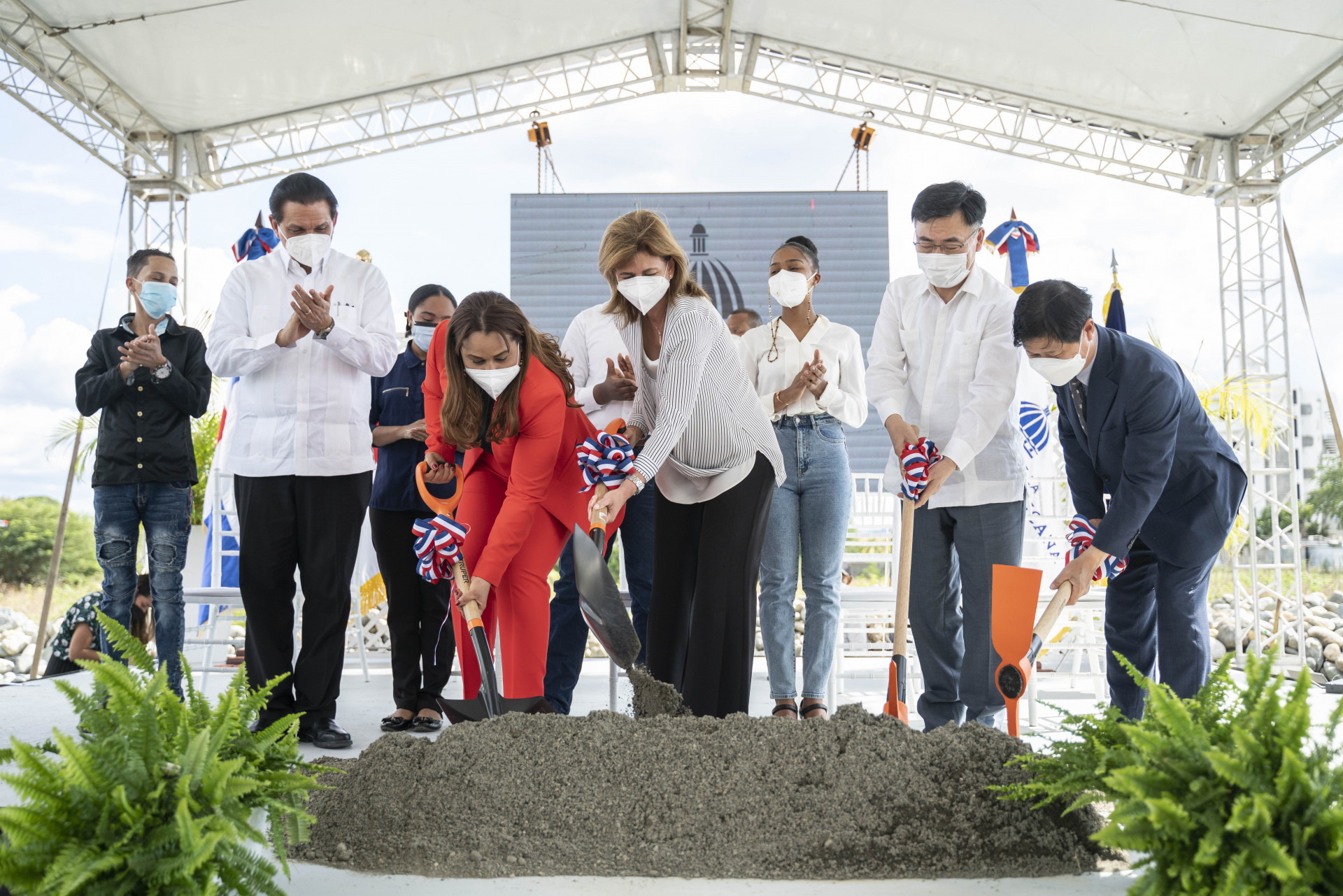 la vicepresidenta Raquel Peña y la ministra de la mujer, Mayra Jimenez, encabezan el Primer Picazo en la construcción Centro de Salud Integral de Adolecentes y Jóvenes en San Juan. San Juan de la Maguana, República Dominicana. 14 de Marzo 2021. Vp/ Jhon Escalante