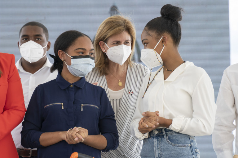 la vicepresidenta Raquel Peña y la ministra de la mujer, Mayra Jimenez, encabezan el Primer Picazo en la construcción Centro de Salud Integral de Adolecentes y Jóvenes en San Juan. San Juan de la Maguana, República Dominicana. 14 de Marzo 2021. Vp/ Jhon Escalante