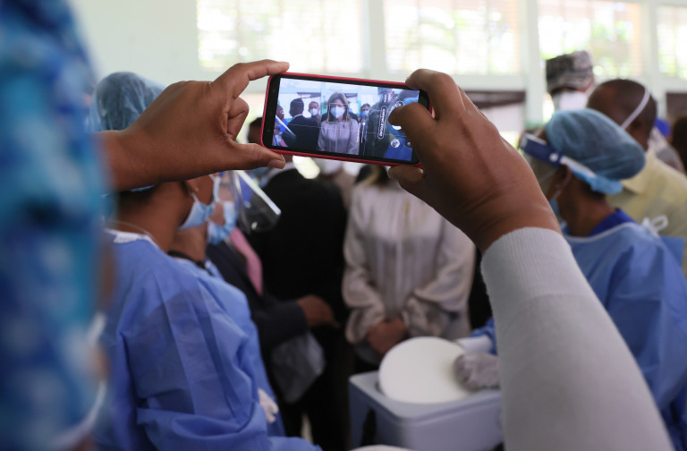 La vicepresidenta encabeza recorrido para visitar el centro de vacunación en el Liceo Secundario «Román Baldorioty De Castro» e inaugurar junto al Dr. Mario Lama, director del Servicio Nacional de Salud (SNS), el Área de Emergencias del Hospital Regional Taiwán 19 de Marzo.