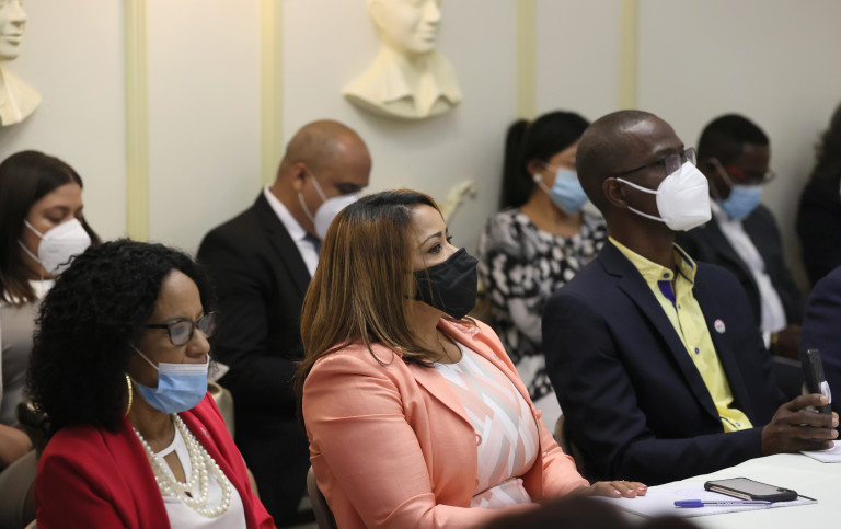 La vicepresidenta Raquel Peña y el Sr. Rafael Santos Badía, director del Instituto Nacional de Formación Técnico Profesional (INFOTEP), sostienen una reunión con representantes de gremios de enfermería.