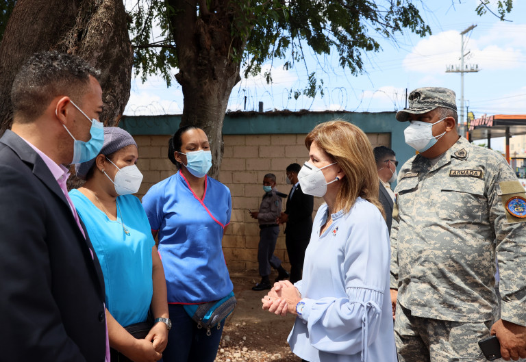 La vicepresidenta Raquel Peña visita el Club Social de Los Billeteros (CSB) para supervisar la jornada del Plan Nacional de Vacunación contra el COVID-19. Los Tres Brazos, Santo Domingo Este.