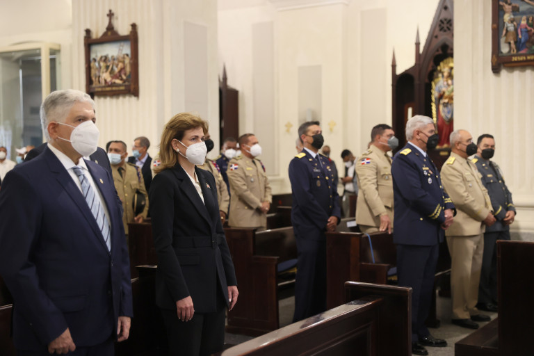 La vicepresidenta Raquel Peña asiste al tradicional «tedeum» con motivo del 177 aniversario de la batalla de Santiago oficiado por monseñor Freddy Bretón Martínez, arzobispo de la Diócesis de Santiago. Catedral Metropolitana Santiago Apóstol, Santiago.