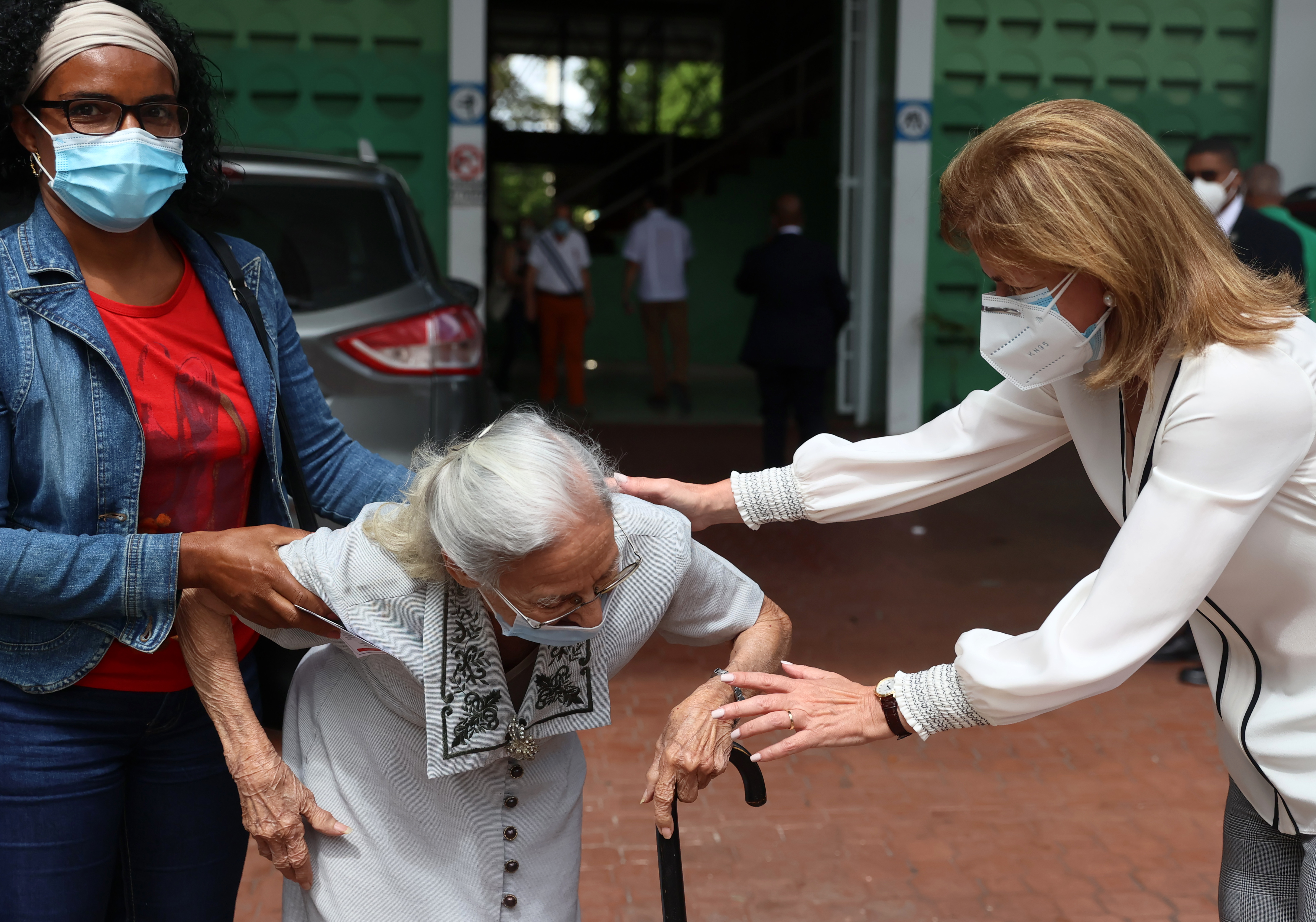 La vicepresidenta Raquel Peña visita el «Pabellón de Combate» del Centro Olímpico Juan Pablo Duarte para supervisar la jornada del Plan Nacional de Vacunación contra el COVID-19 en Semana Santa.