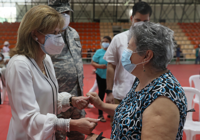 La vicepresidenta Raquel Peña visita el «Pabellón de Combate» del Centro Olímpico Juan Pablo Duarte para supervisar la jornada del Plan Nacional de Vacunación contra el COVID-19 en Semana Santa.