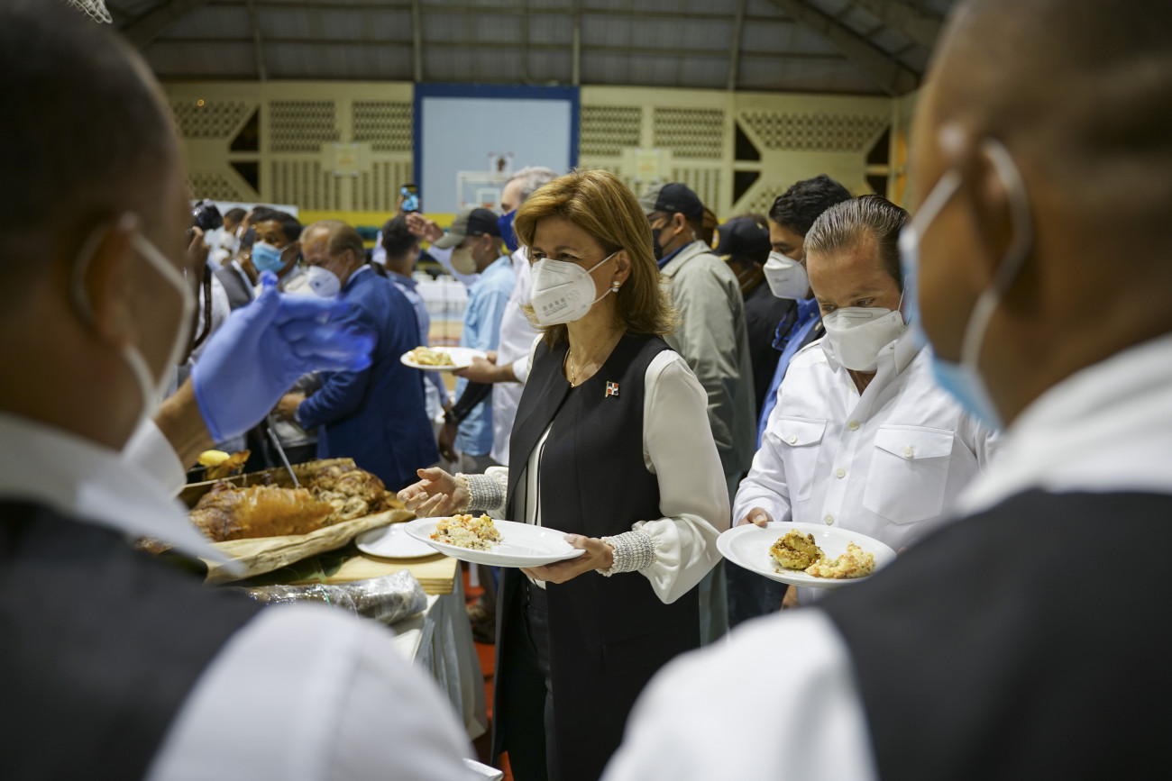 El presidente Luis Abinader y la vicepresidenta Raquel Peña participan en una cena junto a 60 presidentes de «Juntas de Vecinos» en compañía a la gobernadora provincial de Santiago, Rosa Santos; el director del Centro de Desarrollo y Competitividad Industrial (PROINDUSTRIA), el ing. Ulises Rodrٕíguez; el gerente general de la Empresa Distribuidora de Electricidad del Norte (EDENORTE), Ing. Andrés Cueto y el director general de la Corporación del Acueducto y Alcantarillado de Santiago (CORAASAN), Ing. Andrés Burgos, en el Multiuso del sector Los Jazmines. Santiago de los Caballeros, República Dominicana. 18 de Noviembre de 2020. Vp/ Jhon Escalante