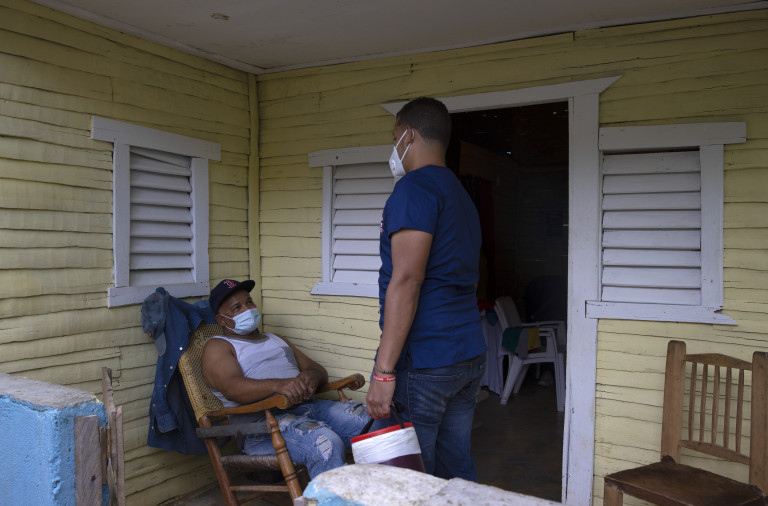 EL Dr. Alberto Maracallo recorre la Loma de Damajagua en busca de personas para vacunar contra el Covid 19. El Dr acude a esta loma ya que para estas personas es casi imposible poder llegar a los centros de vacunación. Loma de Damajagua, Valverde Mao
