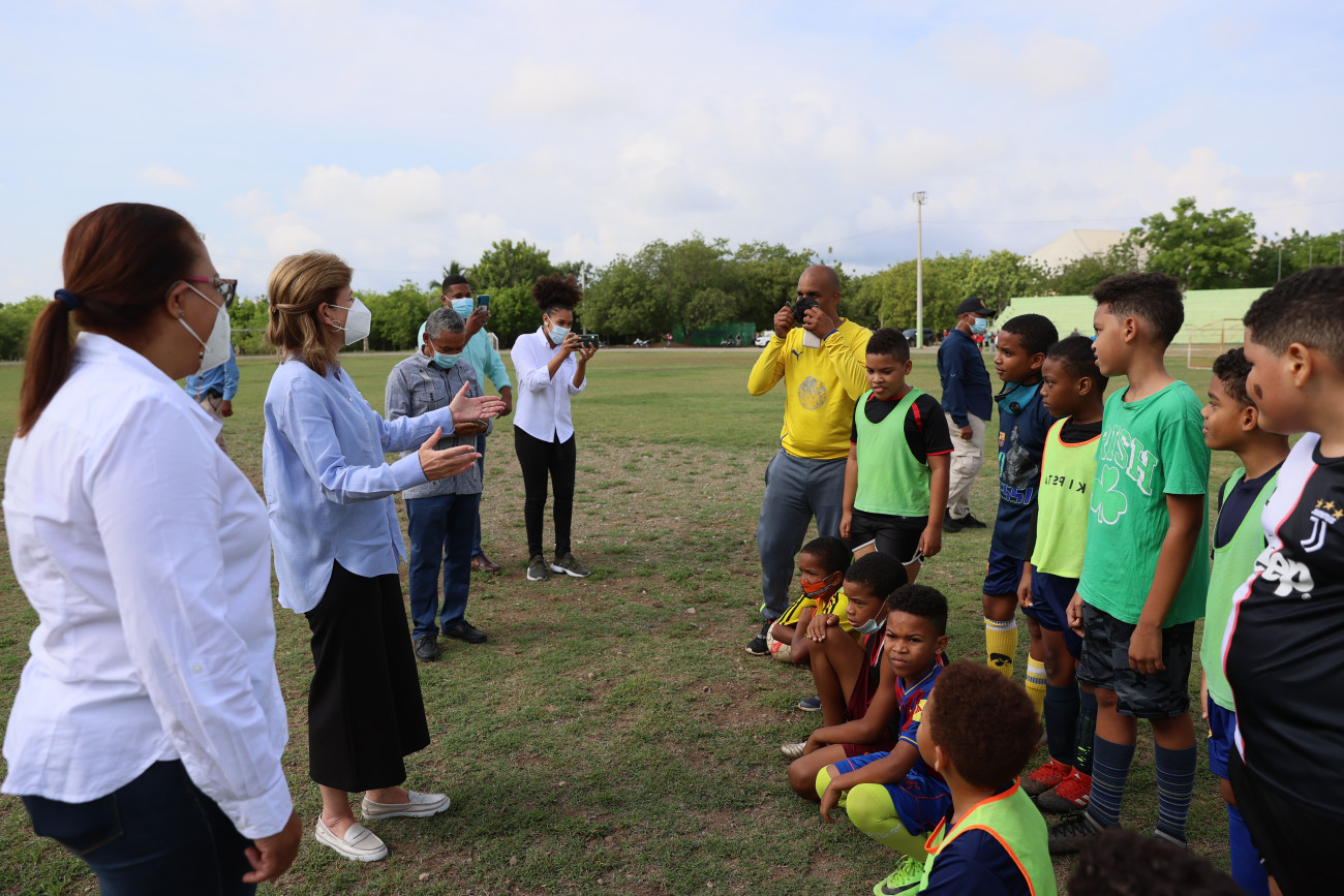 La vicepresidenta Raquel Pena visita las instalaciones del Complejo Deportivo «José Altagracia Puello Rodríguez» para compartir con autoridades locales y un grupo de jóvenes deportistas.