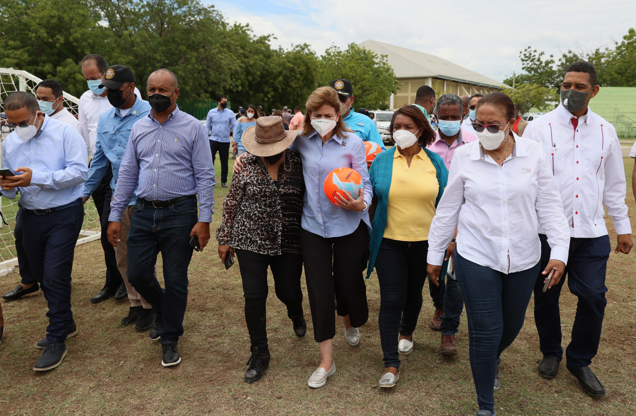 La vicepresidenta Raquel Pena visita las instalaciones del Complejo Deportivo «José Altagracia Puello Rodríguez» para compartir con autoridades locales y un grupo de jóvenes deportistas.
