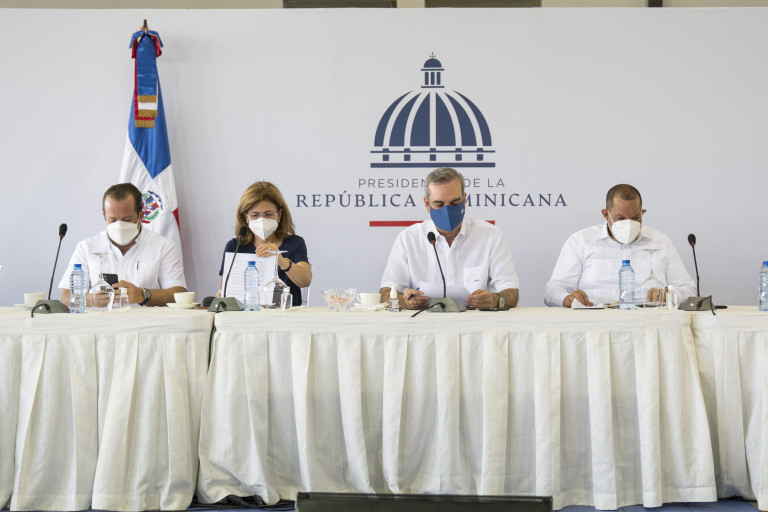 El presidente Luis Abinader y la vicepresidenta Raquel Peña encabezan el encuentro con presidentes de «Juntas de Vecinos» de Santo Domingo Norte para diálogar sobre las problemáticas y posibles soluciones de sus comunidades. Santo Domingo Norte. República Dominicana. 11 de Abril 2021. Vp/ Jhon Escalante