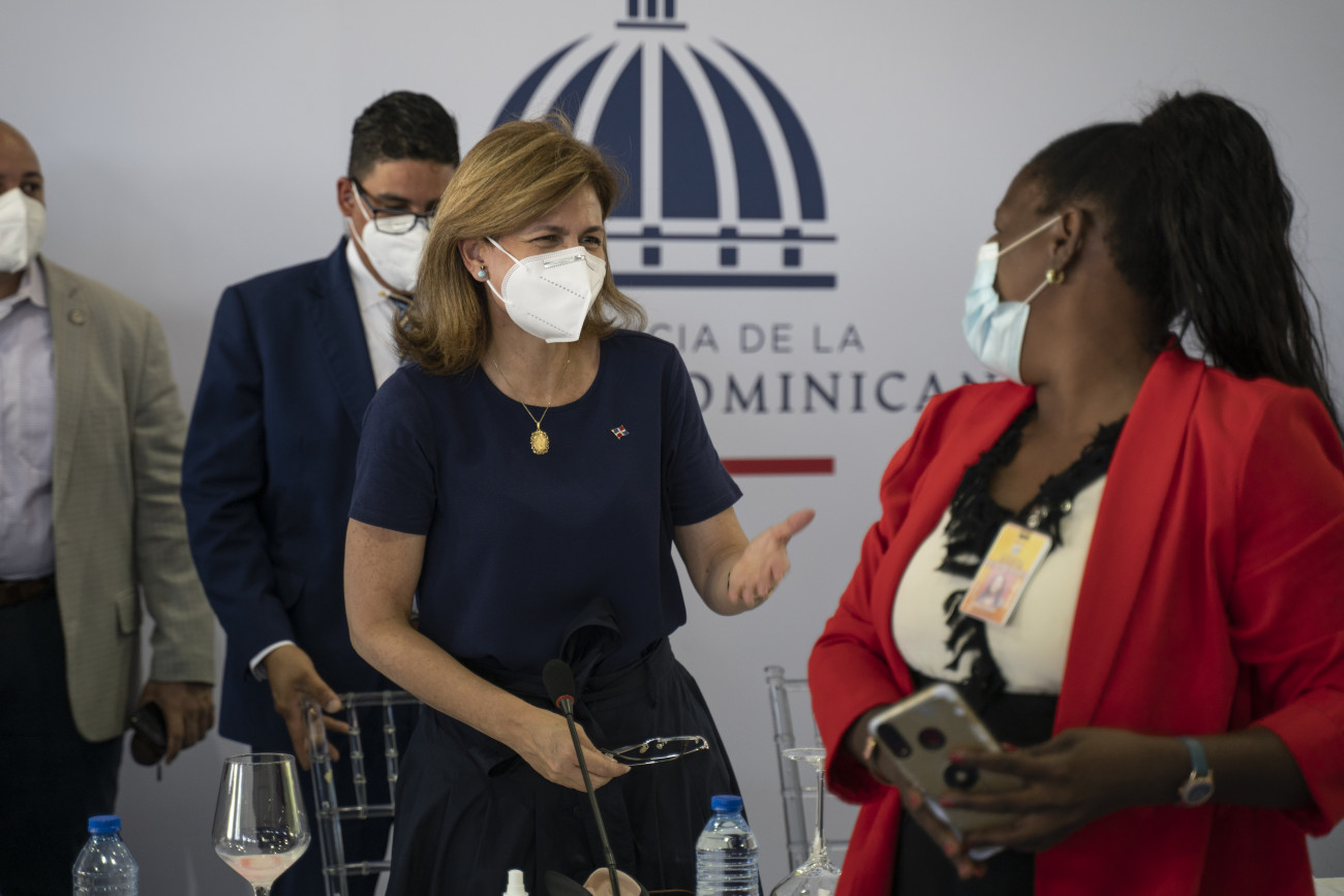El presidente Luis Abinader y la vicepresidenta Raquel Peña encabezan el encuentro con presidentes de «Juntas de Vecinos» de Santo Domingo Norte para diálogar sobre las problemáticas y posibles soluciones de sus comunidades. Santo Domingo Norte. República Dominicana. 11 de Abril 2021. Vp/ Jhon Escalante